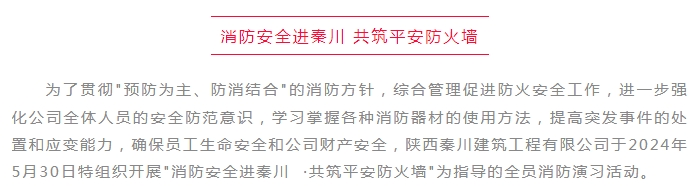 【秦川建筑】展風(fēng)采 | 消防安全進(jìn)秦川 共筑平安防火墻